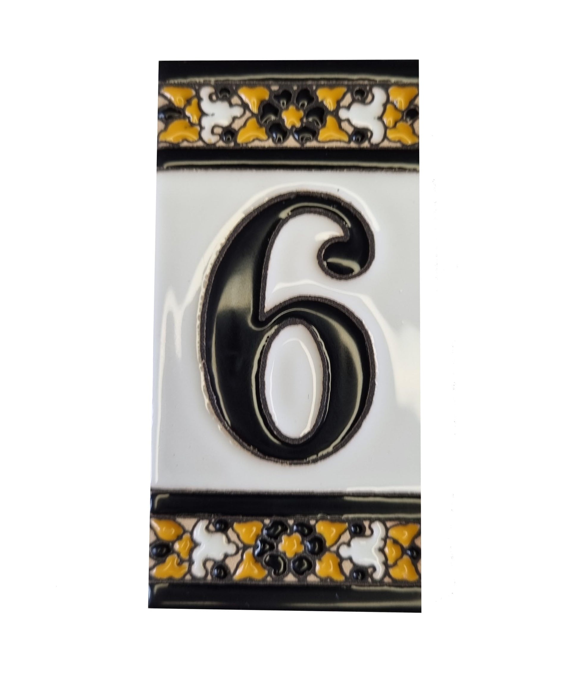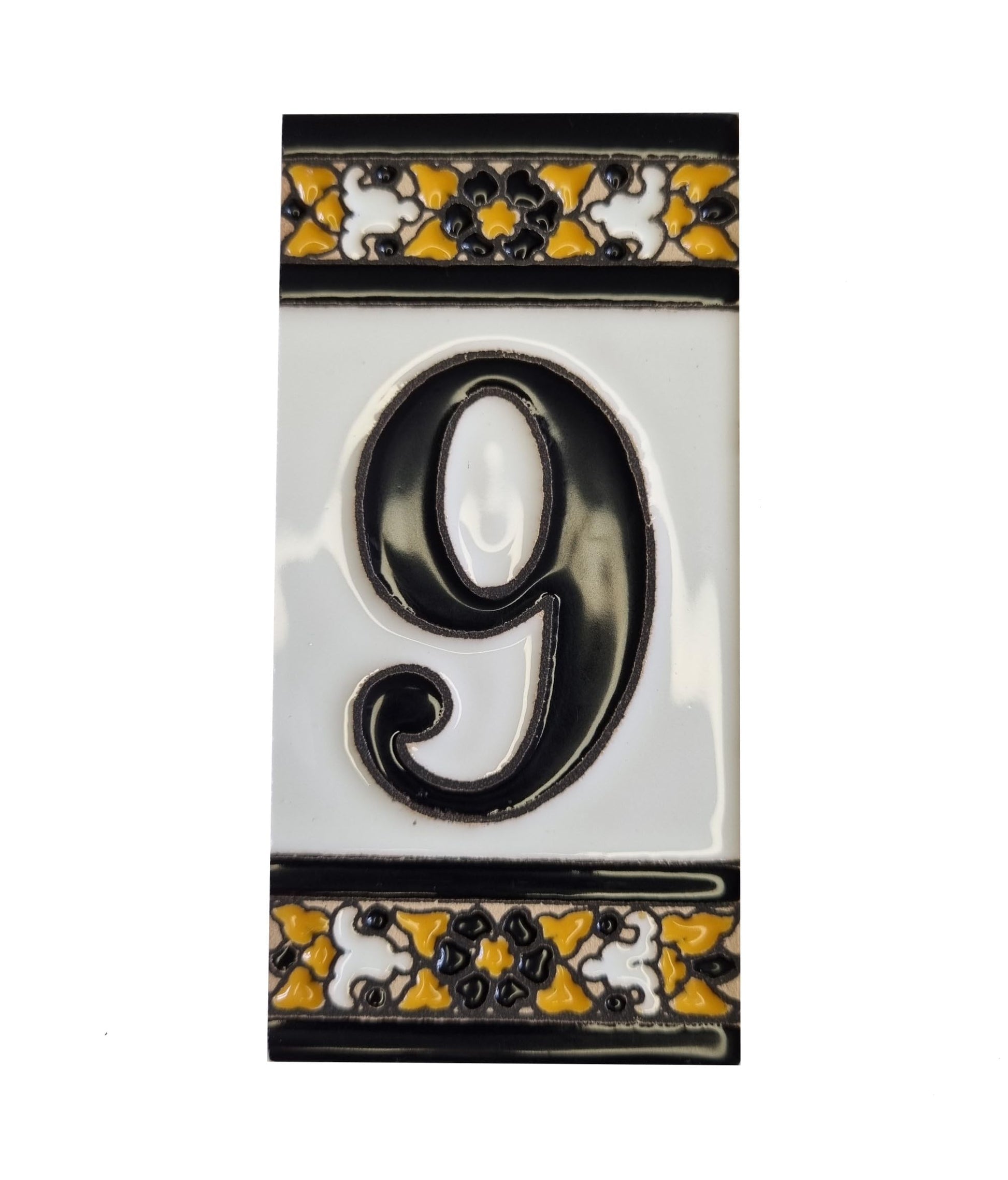 Authentic Spanish floral-designed ceramic tiles, each individually hand-painted in vibrant colours. The Altea-designed tiles are made of the highest quality materials. Ideal for a condo, home or mailbox number. These ceramic house numbers are durable and weatherproof, making them a long-lasting product. These tiles come with the options of numbers 0, 1, 2, 3, 4, 5, 6, 7, 8, 9, letters A, B, C, and a Number sign, as well as wire filigree frames. These beautiful tiles are sure to give any place a unique plaque that will create comments from guests even before they enter your abode.