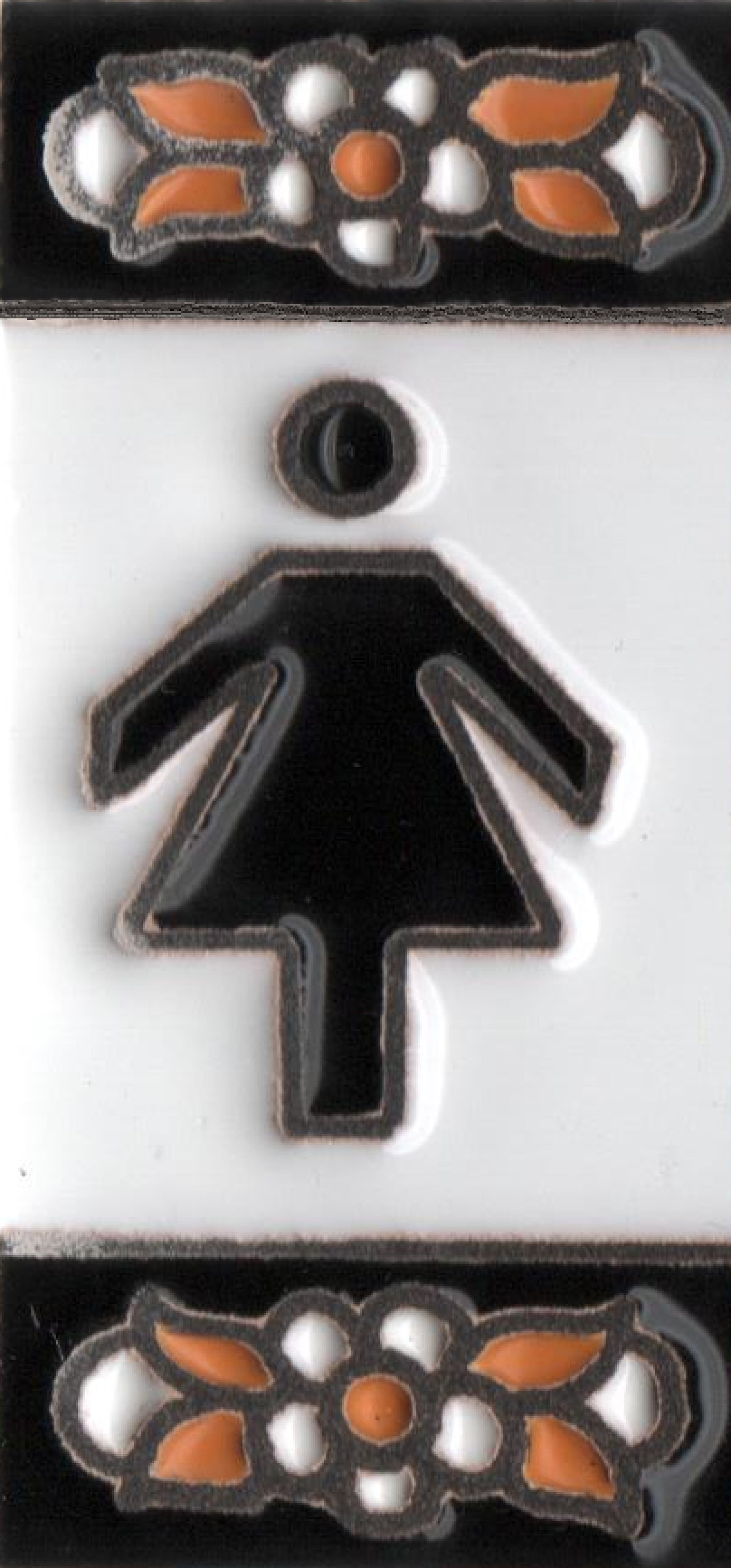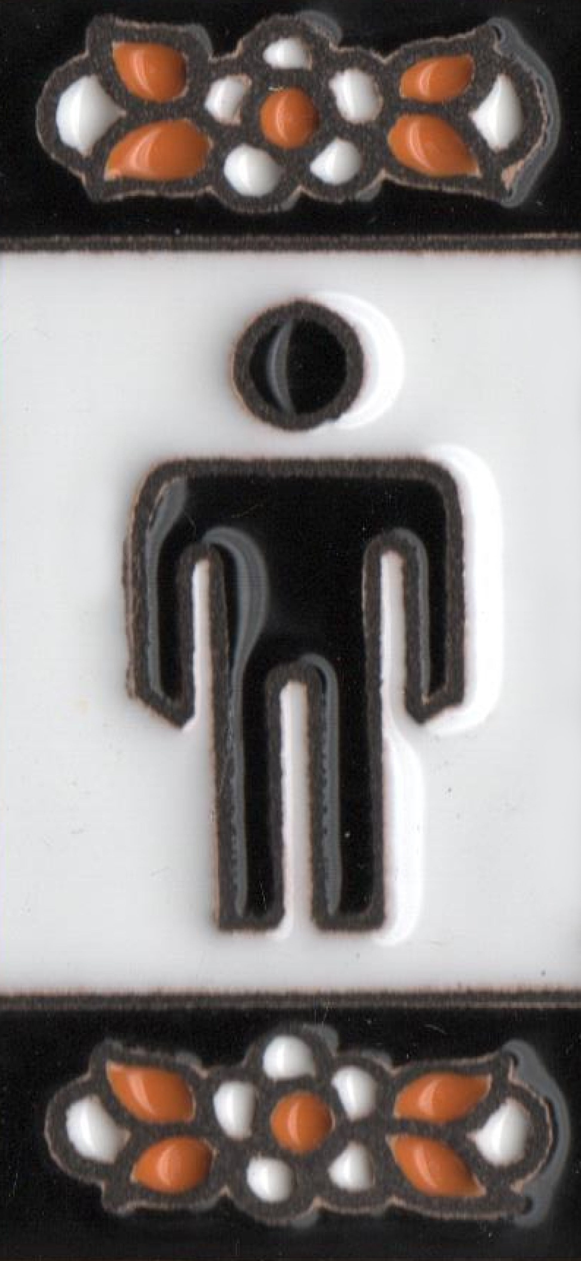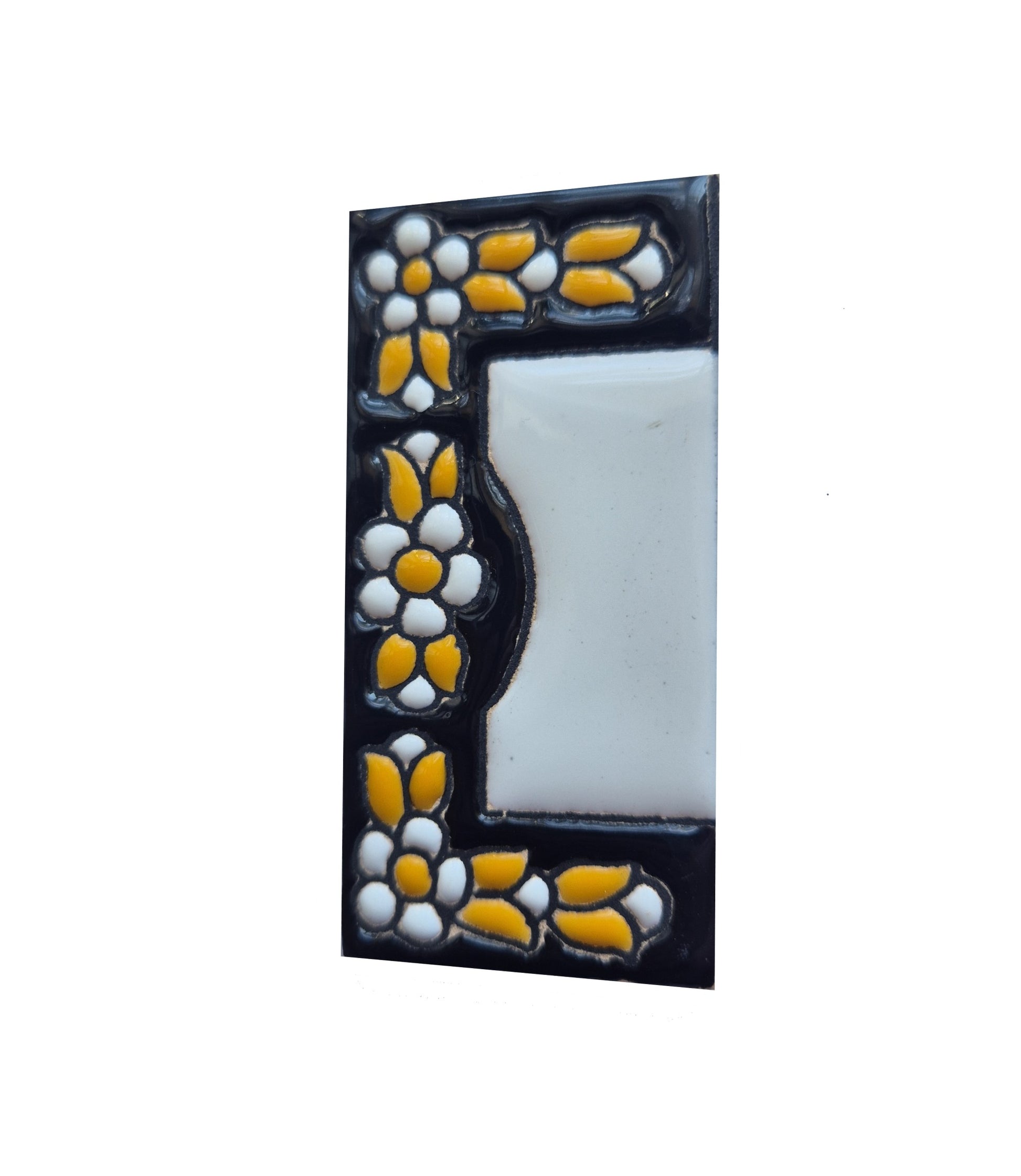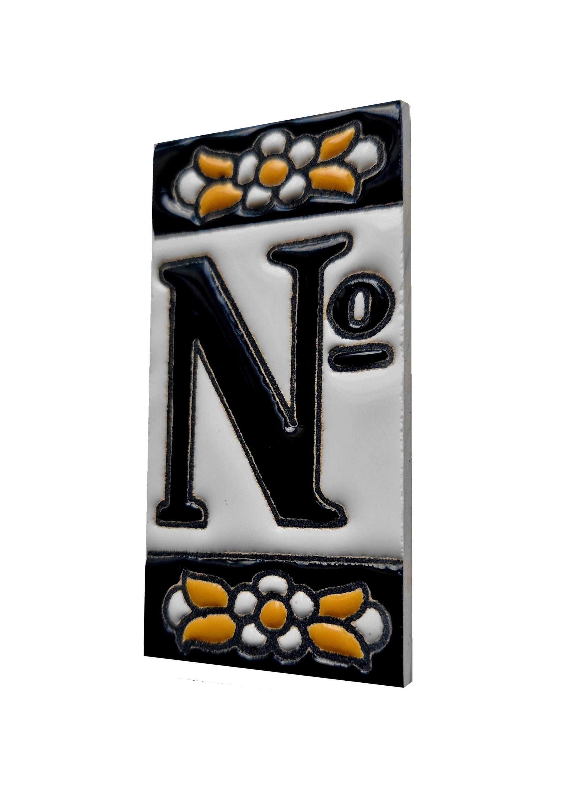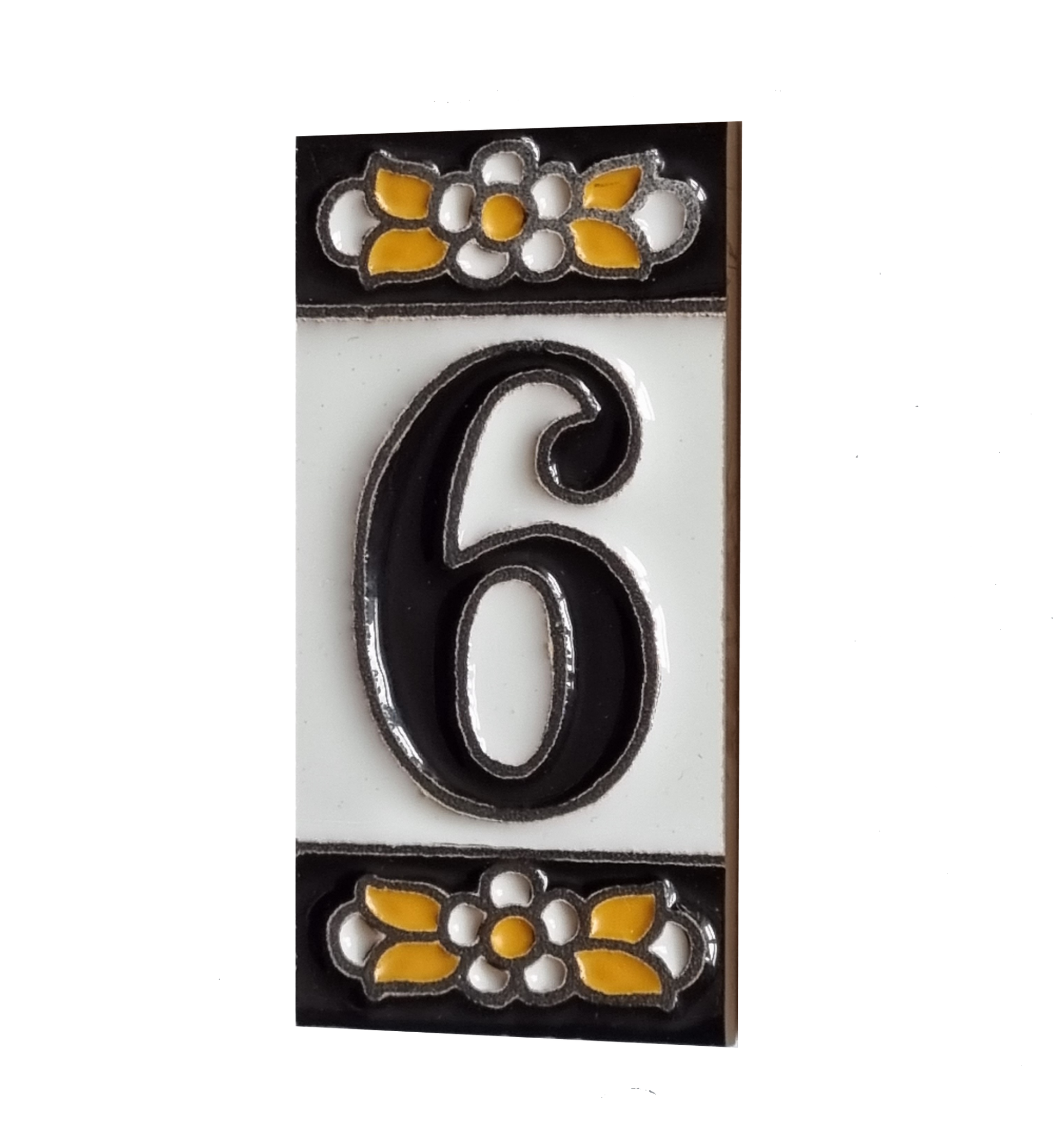 Glazed Ceramic Numbers Hand-Painted using the dry cord technique.