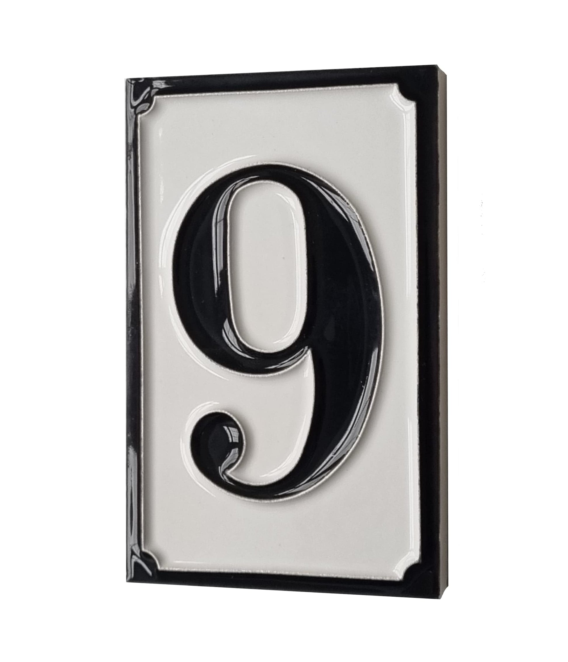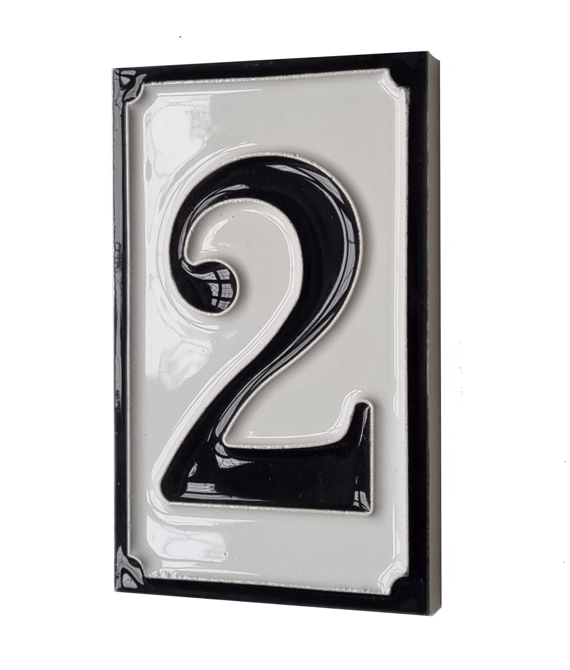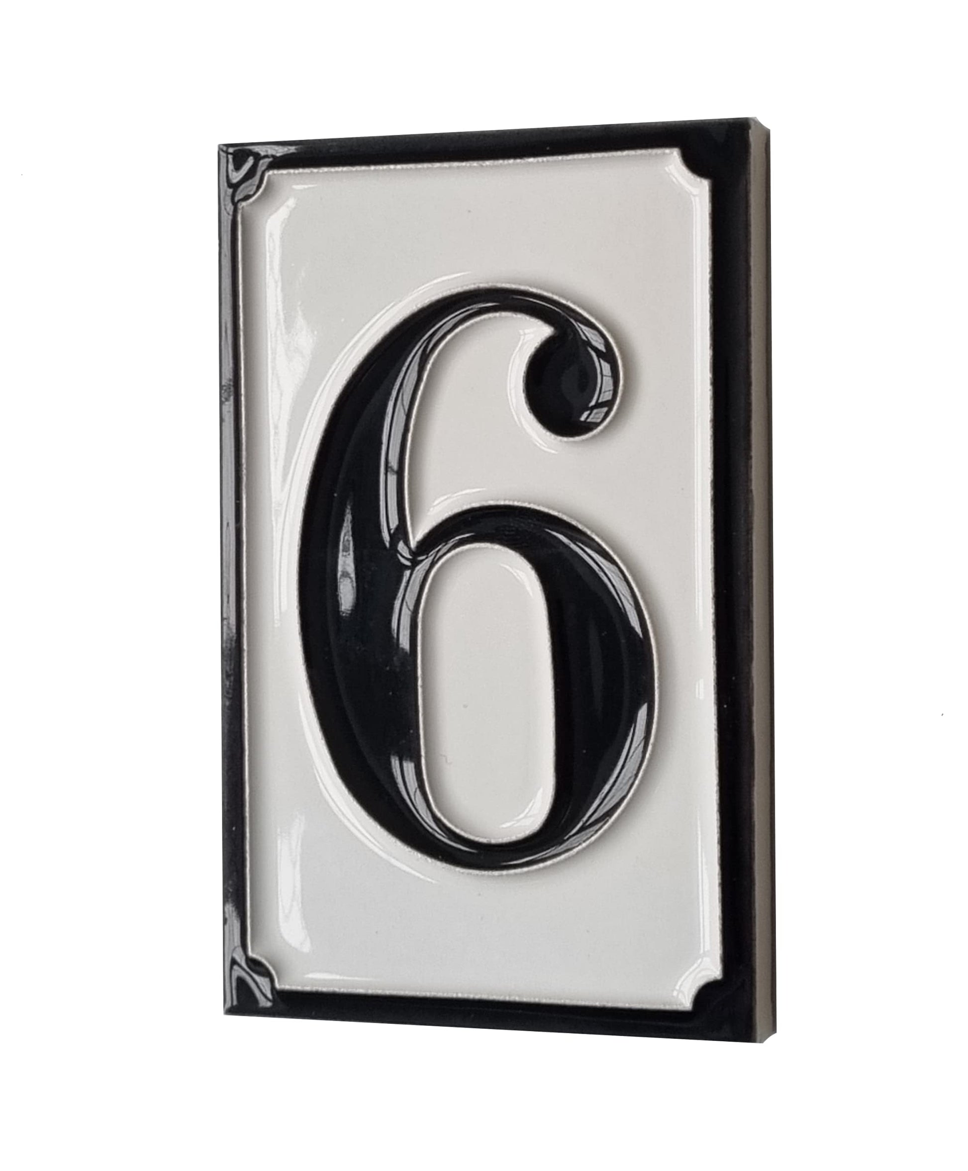Hand-painted Italian-styled Black and White Ceramic House Number Tiles 11 x 7 cm