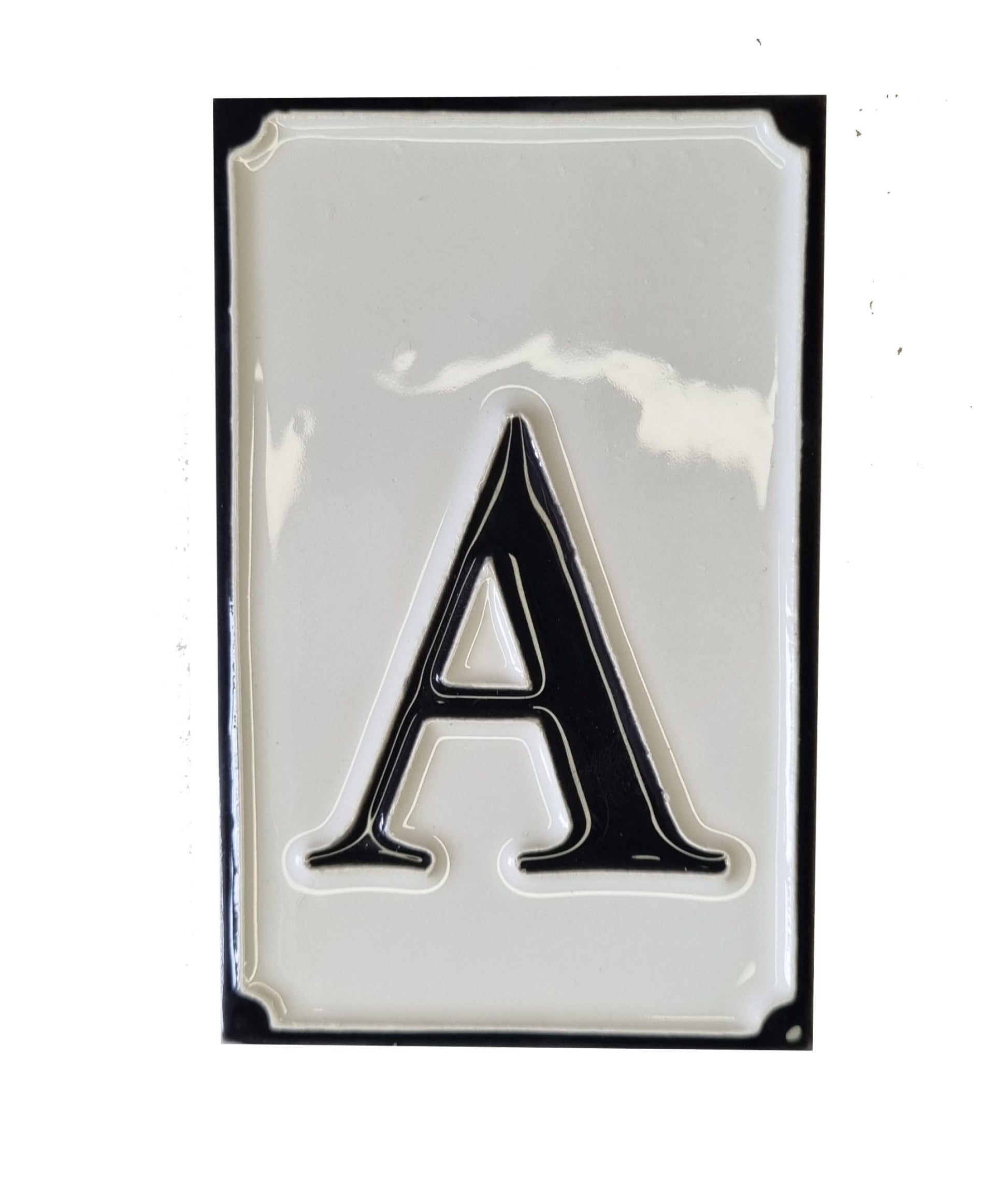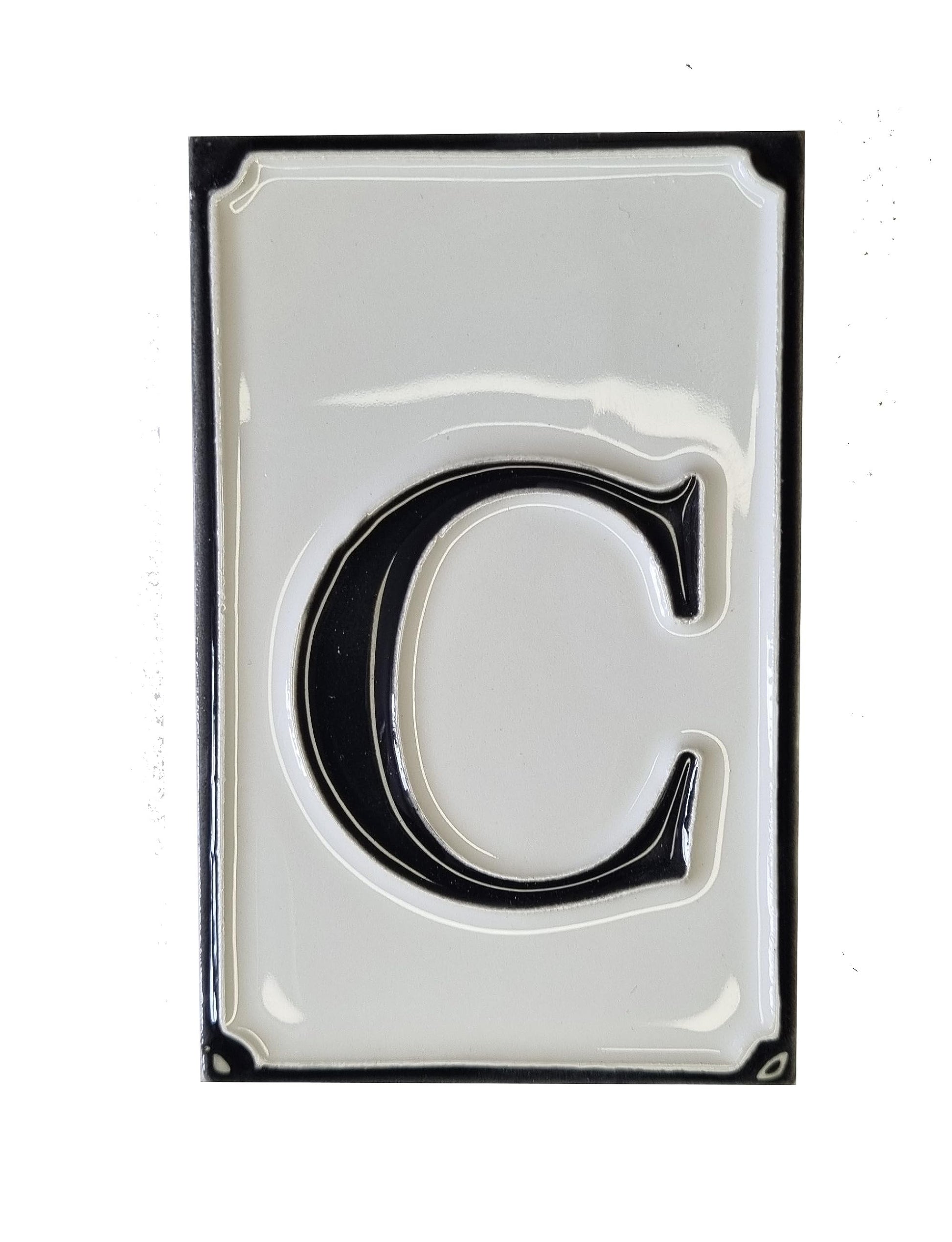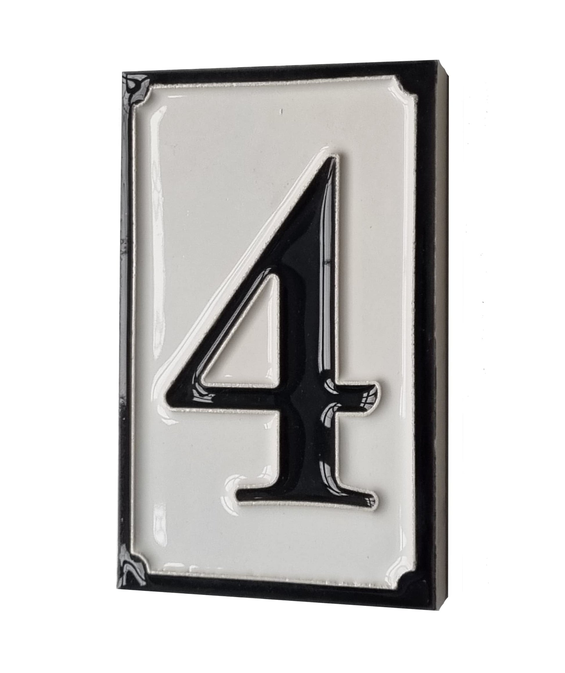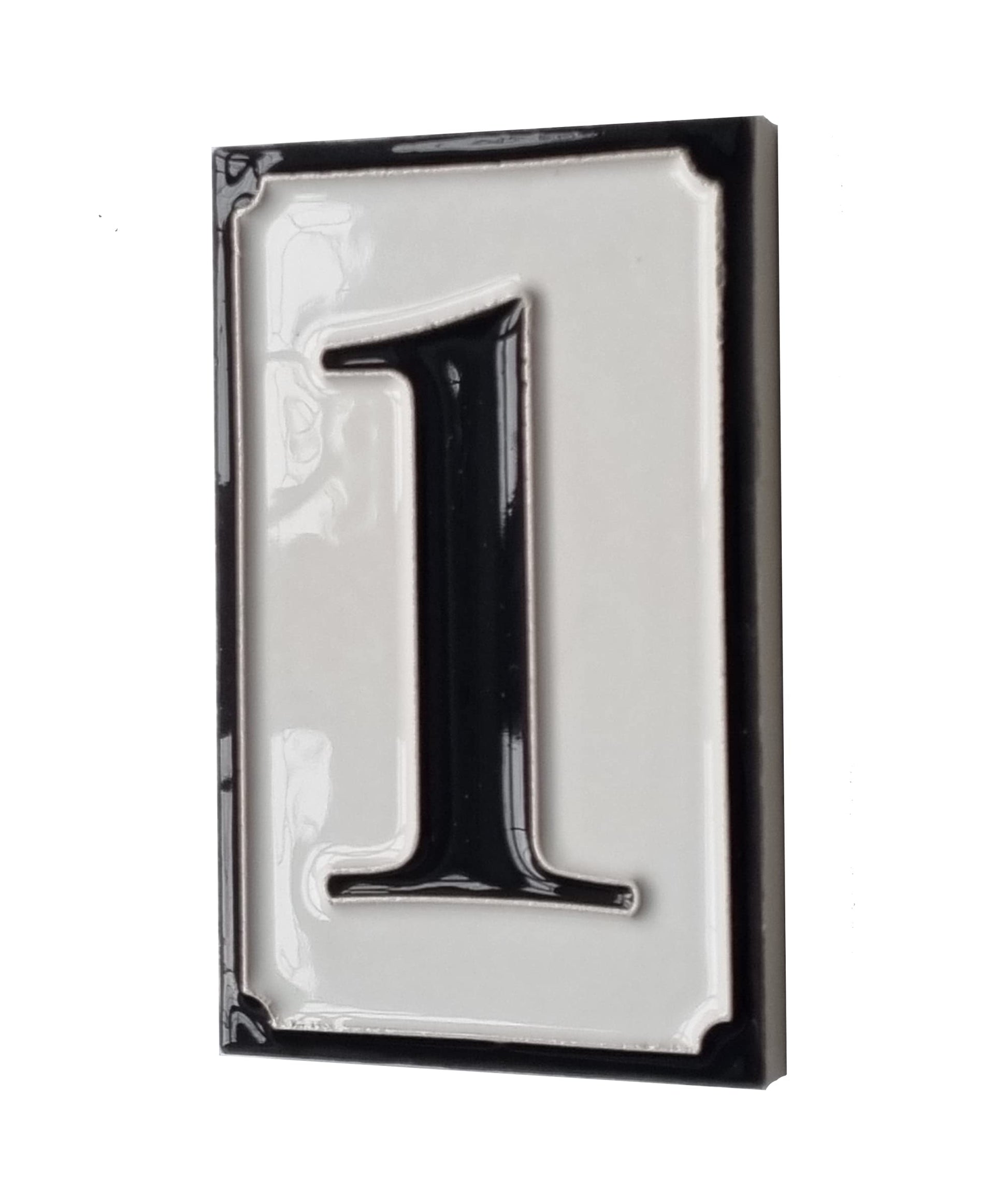 Hand-painted Italian-styled Black and White Ceramic House Number Tiles 11 x 7 cm