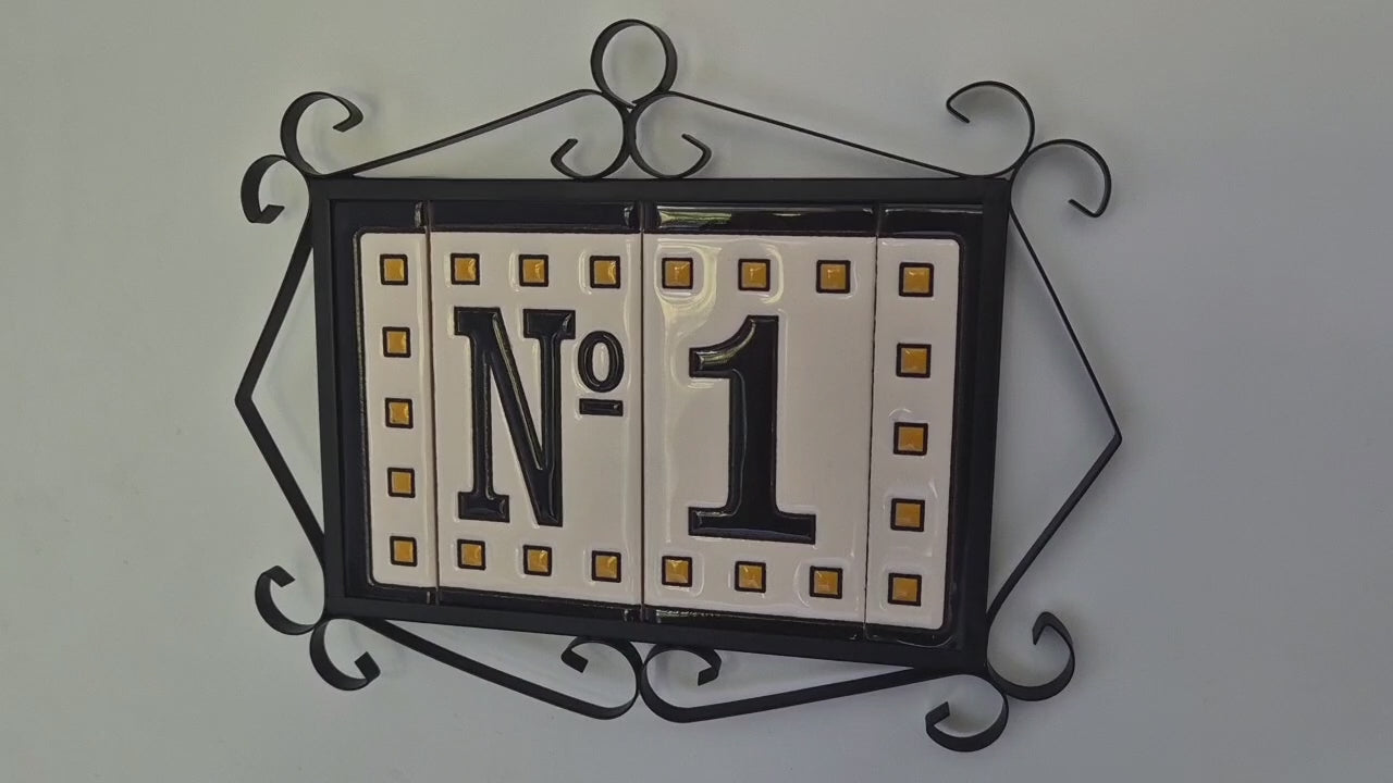 Authentic Spanish Soto-designed ceramic tiles, each individually hand-painted in vibrant colours. The Soto-designed tiles are made of the highest quality materials. Ideal for a condo, home, or mailbox number. These ceramic house numbers are durable and weatherproof, making them long-lasting. These tiles come with the options of numbers 0, 1, 2, 3, 4, 5, 6, 7, 8, 9, and letters A, B, C, as well as wire filigree frames. These beautiful tiles are sure to add a unique touch to any space, creating comments from guests even before they enter your home.