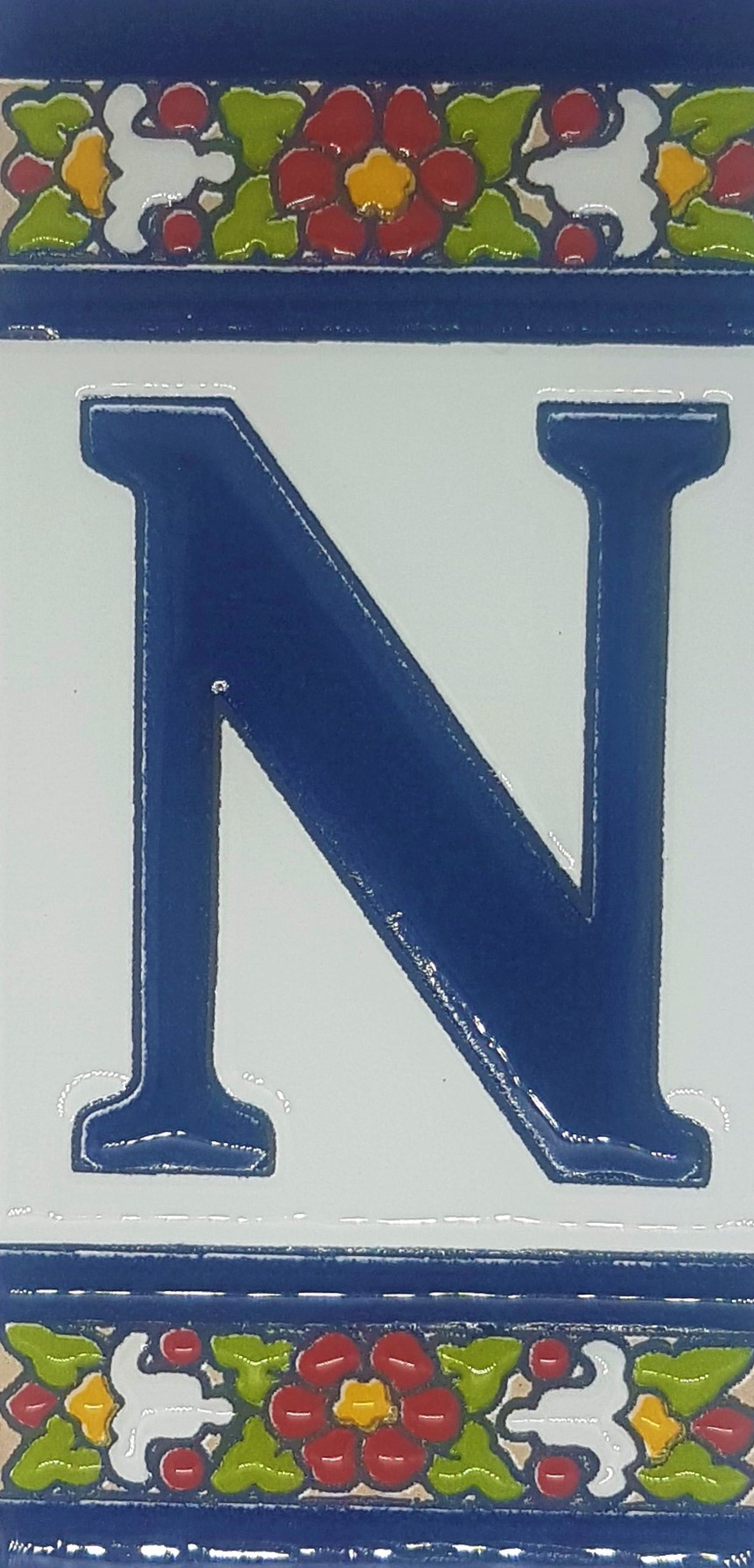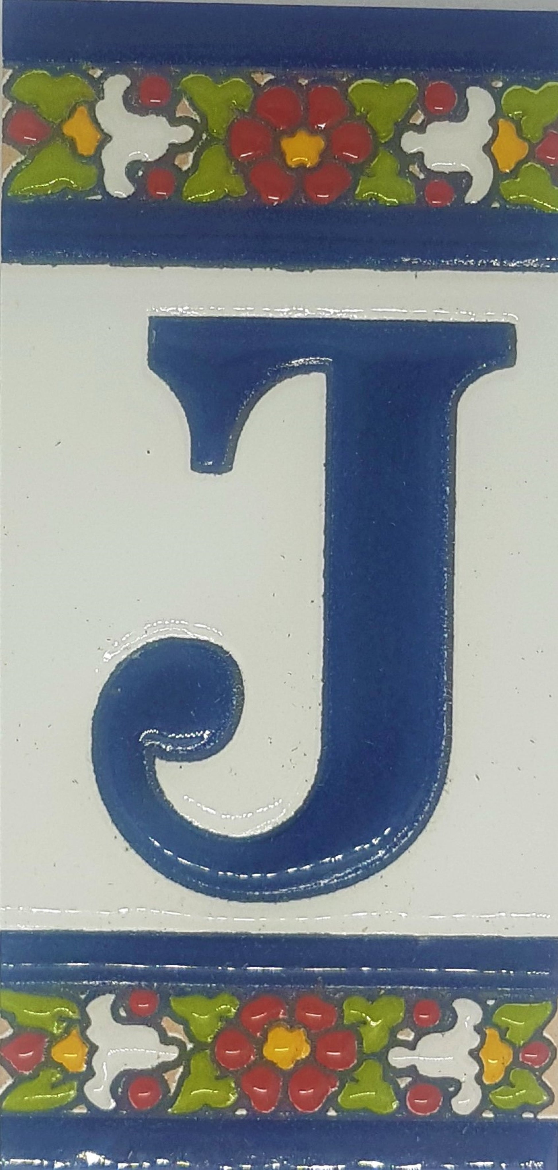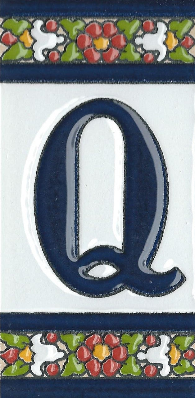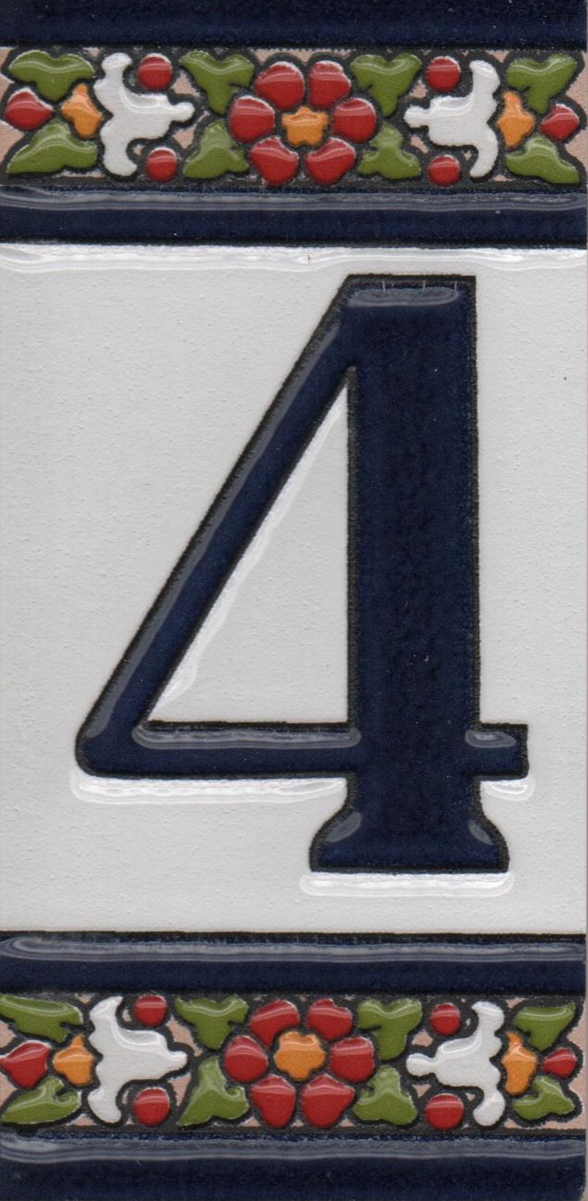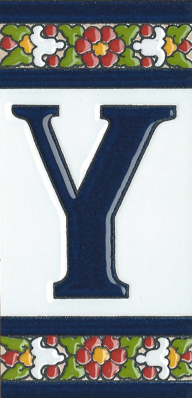 Hand-painted ceramic floral tiles with numbers and letters using the traditional Spanish dry rope technique. Perfect for creating signs with your house number or name. Select your favourite design and build your unique ceramic house or flat number.