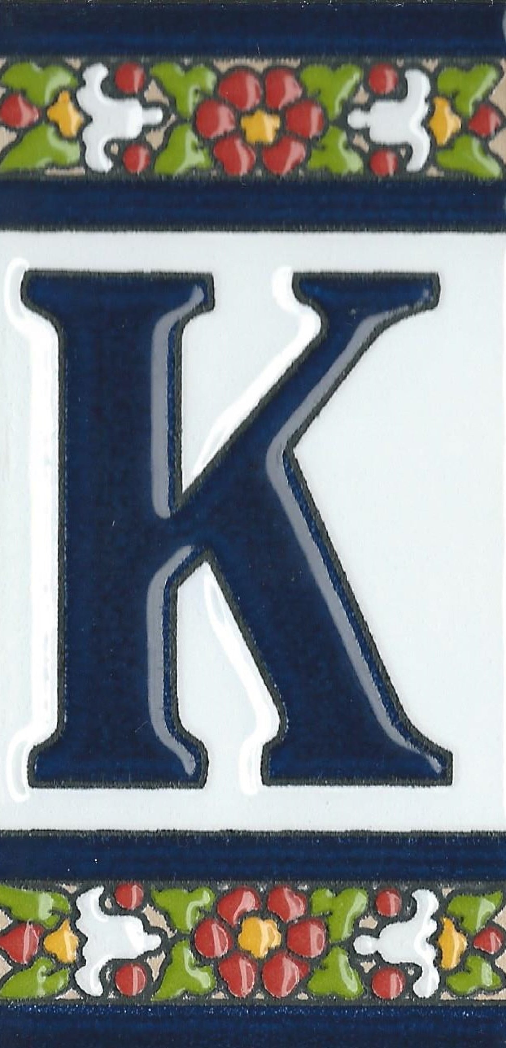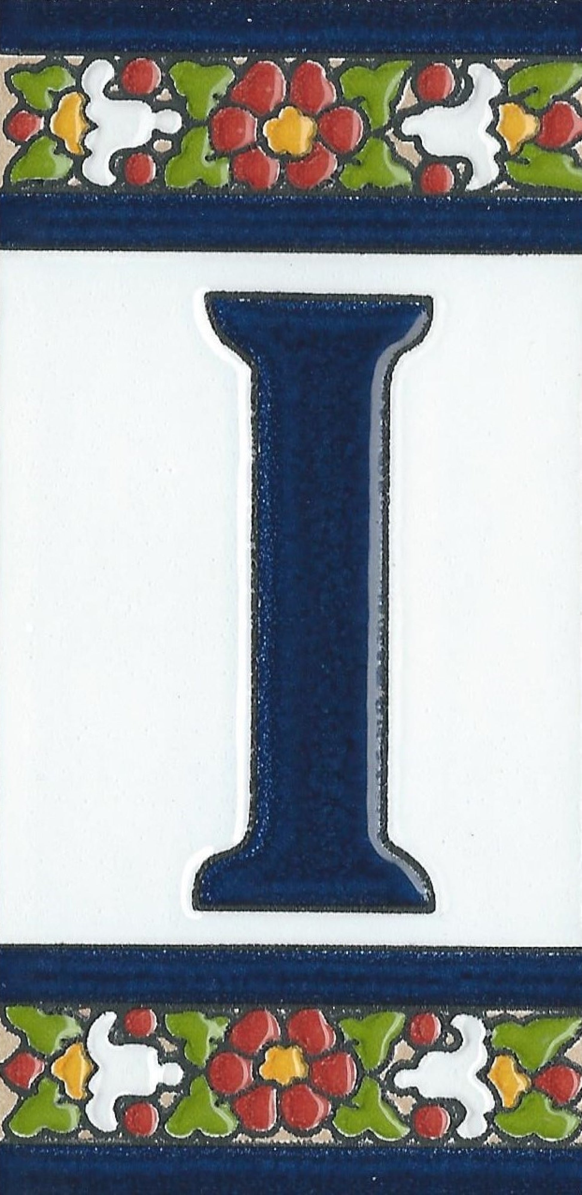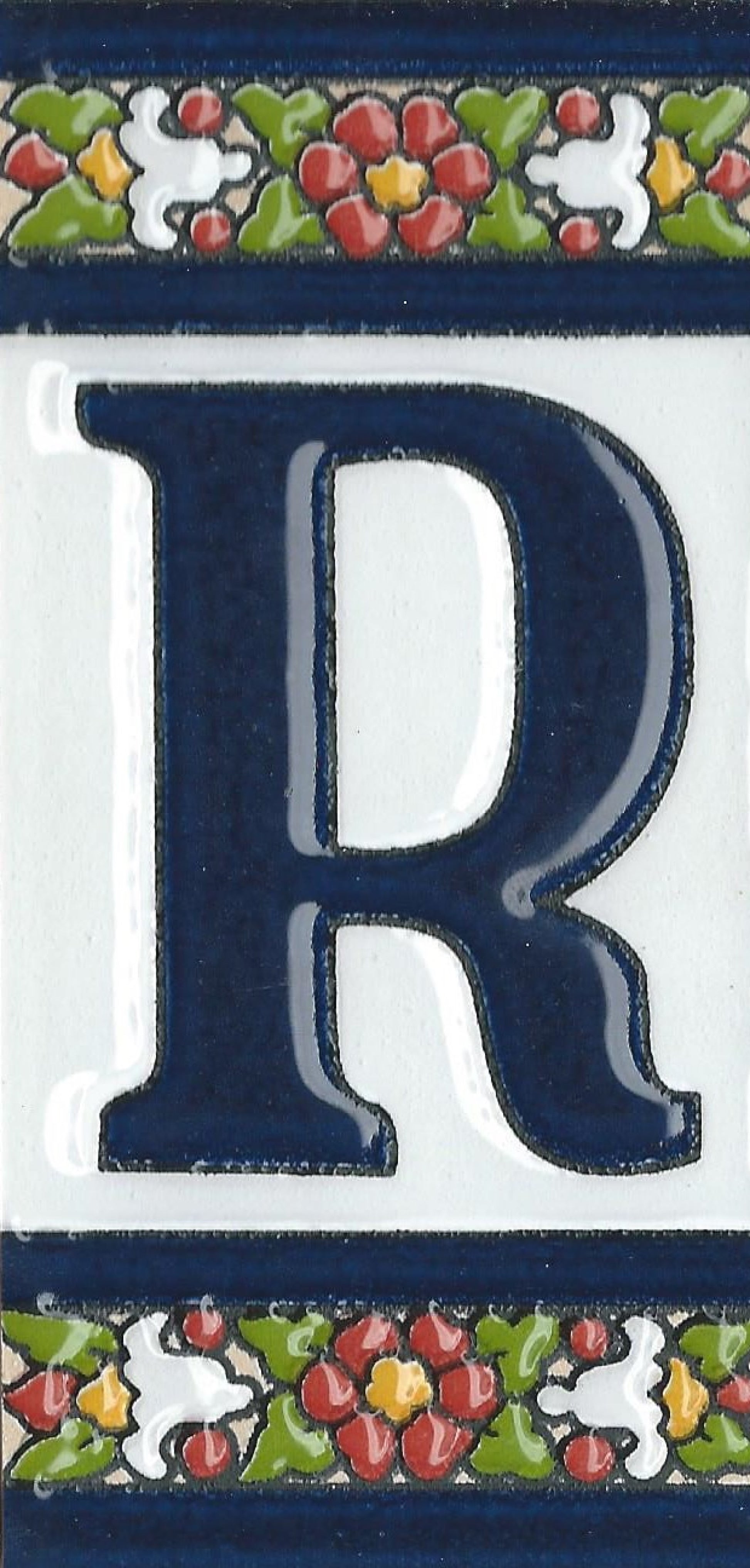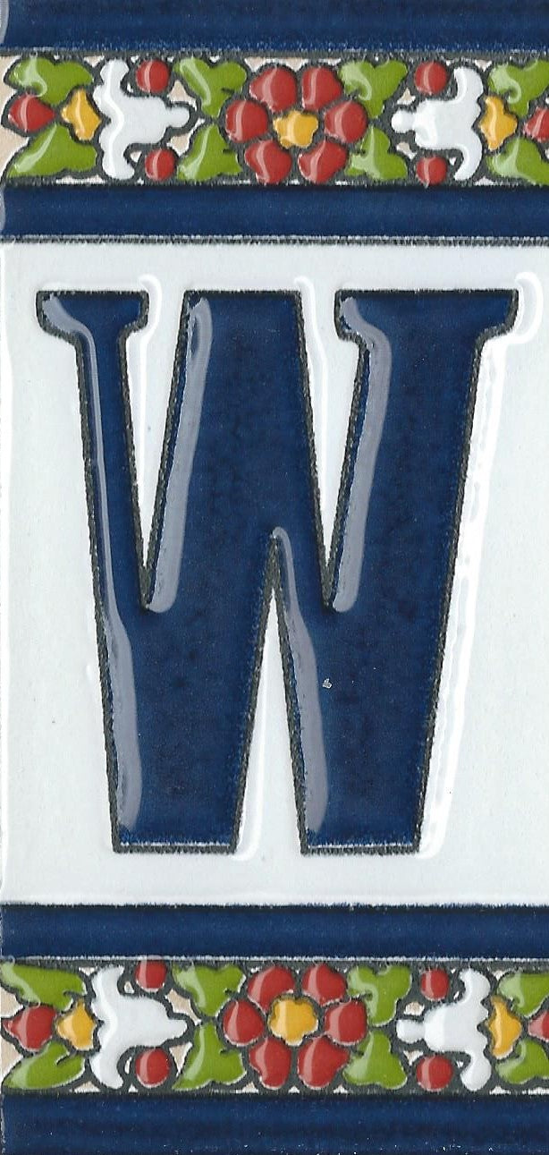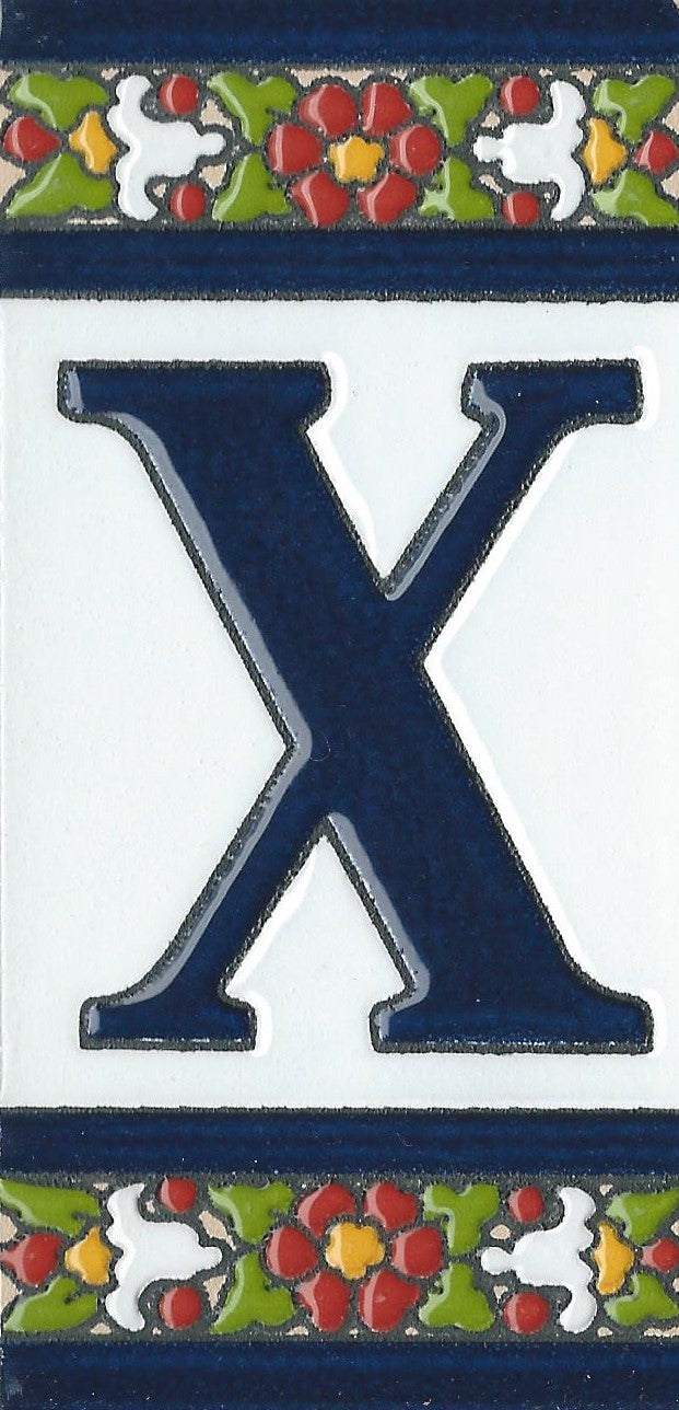 Hand-painted ceramic floral tiles with numbers and letters using the traditional Spanish dry rope technique. Perfect for creating signs with your house number or name. Select your favourite design and build your unique ceramic house or flat number.